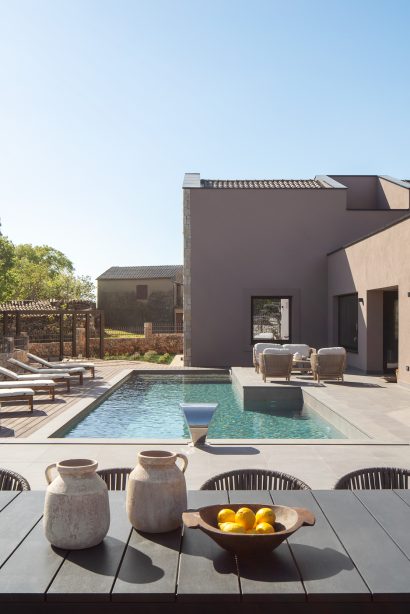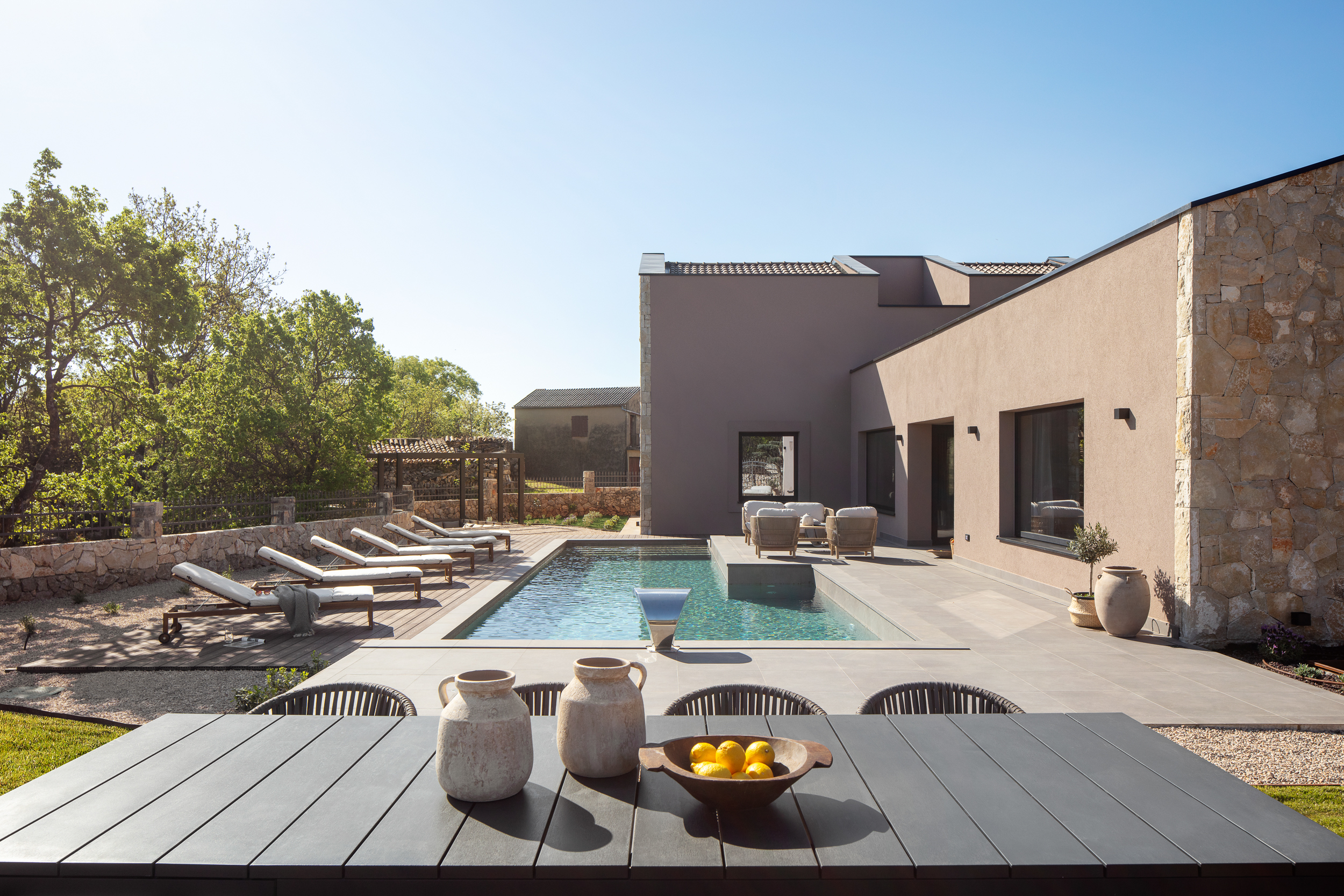 Zvijezda okoliša je 14 metarski bazen, okružen udobnim ležaljkama te cvjetnim vrtom lavande i ružmarina čiji će mirisi dodatno opustiti vaša osjetila. Sunčalište je pažljivo osmišljeno kako bi pružilo mir i tišinu, stvarajući ugodnu atmosferu za uživanje u prirodi te svježem Jadranskom zraku.